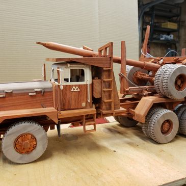 I specialize in building custom made, personalized gifts, finely detailed, scale wooden display models of trucks, equipment, and aircraft. Each scale model is individually handcrafted, unique, with movable parts and fine details that distinguish these wooden display models as exquisite display pieces. Each replica may be made from a variety of local and imported fine hardwoods and softwoods, including Padauk, Purple Heart, Oak, Walnut, Cherry, Aspen, Birch, Maple, Fir, Spruce, Pine, and Western Red Cedar. All models are finished with a clear coloured finish to maintain the natural wood colours, no stains or paints are used.